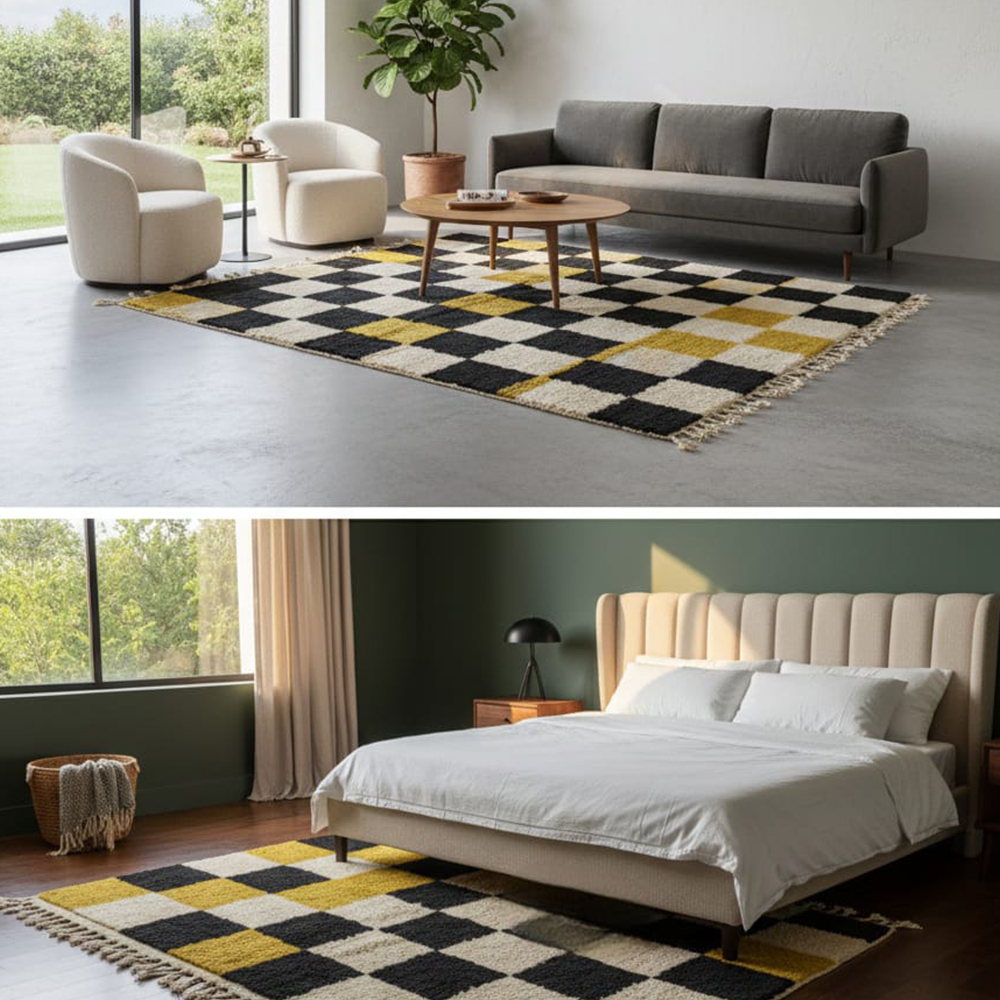Beni Mrirt rugs are handwoven Moroccan wool carpets, prized for their velvety softness and dense texture. With elegant patterns and timeless design, they bring warmth, luxury, and sophistication to any space.