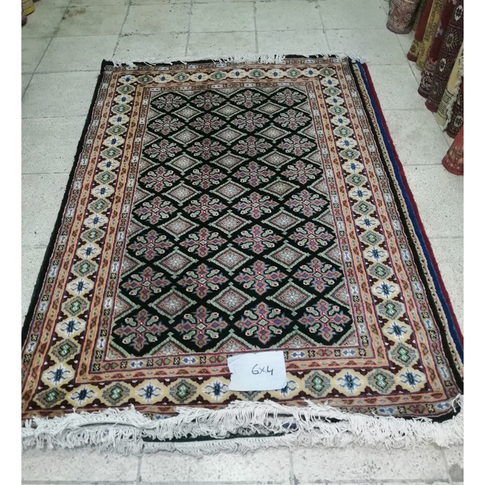The Elegant Pakistani Small Size Single Knot Rug is handwoven with traditional craftsmanship, featuring rich patterns and soft textures. Its compact size makes it ideal for adding elegance and warmth to any small space.