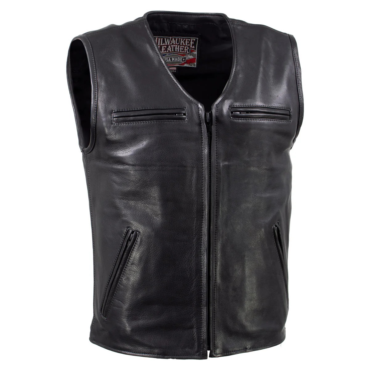 Leather vests are stylish and versatile garments crafted from high-quality genuine or synthetic leather. They offer a sleek and rugged look while providing lightweight comfort and durability. Commonly worn by bikers, fashion enthusiasts, and outdoor adventurers, leather vests feature front zippers or button closures, multiple pockets, and adjustable sides for a perfect fit. Their sleeveless design allows freedom of movement and layering over shirts or hoodies. Ideal for casual wear or motorbike rides, leather vests combine classic appeal, practicality, and timeless fashion in one piece.